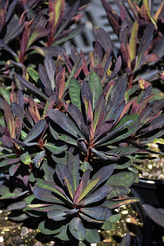 Blackbird Evergreen Spurge's narrow leaves remain deep purple in color throughout the year on a plant with a mounded habit of growth.