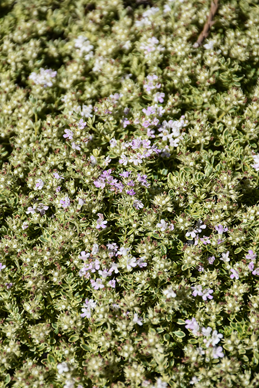 Highland Cream Creeping Thyme will grow to be only 2 inches tall at maturity extending to 3 inches tall with the flowers, with a spread of 18 inches. When grown in masses or used as a bedding plant, individual plants should be spaced approximately 16 inches apart. Its foliage tends to remain low and dense right to the ground. It grows at a fast rate, and under ideal conditions can be expected to live for approximately 10 years. As an evegreen perennial, this plant will typically keep its form and foliage year-round.