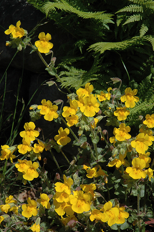 Yellow Monkey Flower will grow to be about 22 inches tall at maturity, with a spread of 24 inches. When grown in masses or used as a bedding plant, individual plants should be spaced approximately 18 inches apart. Its foliage tends to remain dense right to the ground, not requiring facer plants in front. It grows at a medium rate, and under ideal conditions can be expected to live for approximately 10 years. As an herbaceous perennial, this plant will usually die back to the crown each winter, and will regrow from the base each spring. Be careful not to disturb the crown in late winter when it may not be readily seen!