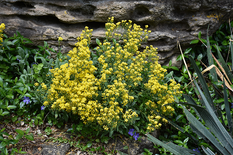 Alpine Alyssum is blanketed in stunning clusters of fragrant yellow flowers at the ends of the stems from mid to late spring. Its tomentose narrow leaves remain grayish green in color throughout the season.