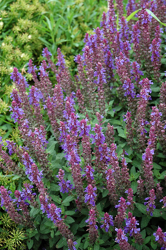 Sensation Sky Blue Meadow Sage will grow to be only 6 inches tall at maturity extending to 12 inches tall with the flowers, with a spread of 12 inches. When grown in masses or used as a bedding plant, individual plants should be spaced approximately 10 inches apart. It grows at a medium rate, and under ideal conditions can be expected to live for approximately 5 years. As an herbaceous perennial, this plant will usually die back to the crown each winter, and will regrow from the base each spring. Be careful not to disturb the crown in late winter when it may not be readily seen!
