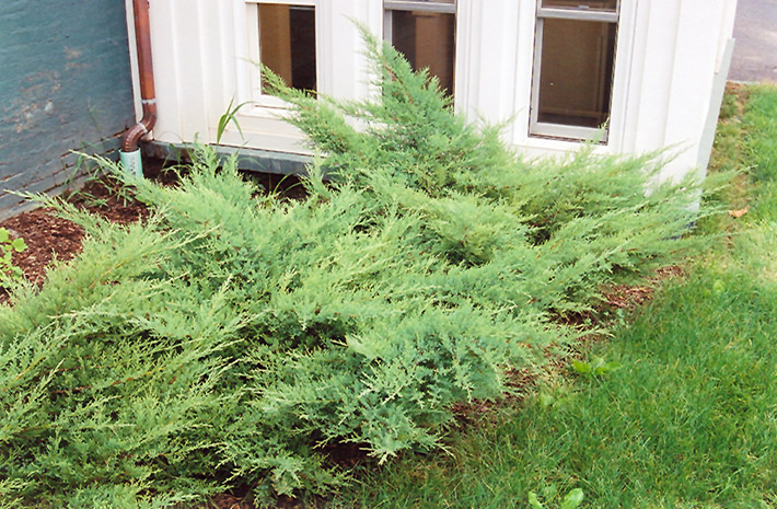 Kallay's Compact Juniper will grow to be about 3 feet tall at maturity, with a spread of 6 feet. It tends to fill out right to the ground and therefore doesn't necessarily require facer plants in front. It grows at a slow rate, and under ideal conditions can be expected to live for approximately 30 years.