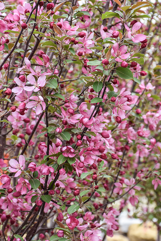 Red Barron Flowering Crab is a deciduous tree with a narrowly upright and columnar growth habit. Its average texture blends into the landscape, but can be balanced by one or two finer or coarser trees or shrubs for an effective composition.