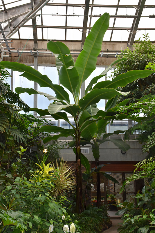 Bananas are curious plants in a botanical sense. Strictly speaking they are perennials, with individual shoots rising up from underground rhizomes and maturing in one to two years, then ultimately dying after producing fruit, to be replaced by new shoots from the base. However, given their ultimate size and coarseness they almost behave as small trees in the landscape. This plant should only be grown in full sunlight. It does best in average to evenly moist conditions, but will not tolerate standing water. It may require supplemental watering during periods of drought or extended heat. It is not particular as to soil type or pH. It is somewhat tolerant of urban pollution. This particular variety is an interspecific hybrid.