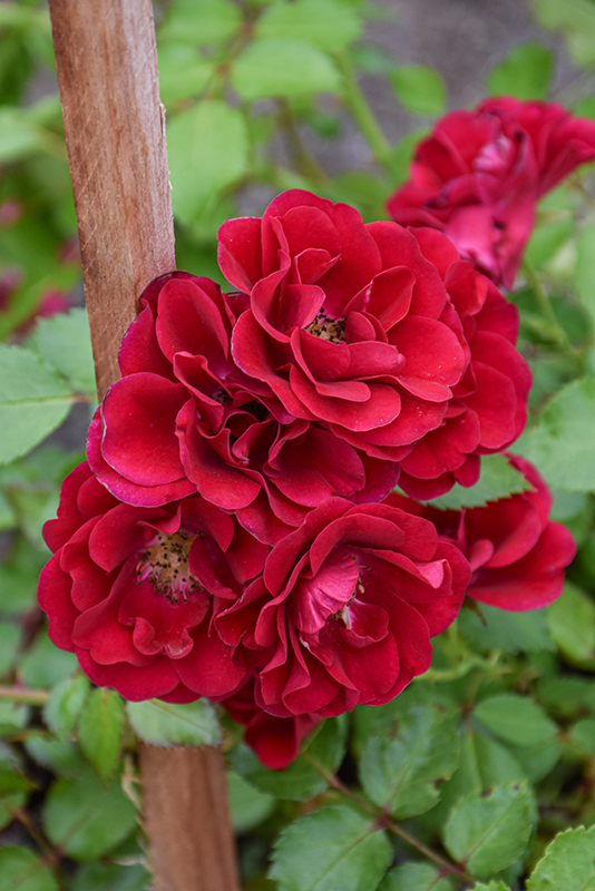 Fire Meidiland® Rose features showy double red flowers with gold eyes at the ends of the branches from late spring to early fall. The flowers are excellent for cutting. It has green deciduous foliage which emerges crimson in spring. The glossy oval compound leaves do not develop any appreciable fall color.