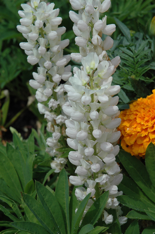 Mini Gallery™ White Lupine will grow to be about 12 inches tall at maturity extending to 16 inches tall with the flowers, with a spread of 10 inches. When grown in masses or used as a bedding plant, individual plants should be spaced approximately 8 inches apart. It grows at a fast rate, and under ideal conditions can be expected to live for approximately 3 years. As an herbaceous perennial, this plant will usually die back to the crown each winter, and will regrow from the base each spring. Be careful not to disturb the crown in late winter when it may not be readily seen!
