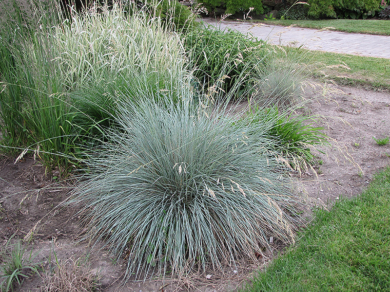 Blue Oat Grass' attractive grassy leaves remain steel blue in color throughout the year on a plant with a mounded habit of growth. The tan seed heads are carried on plumes from mid summer to late fall.