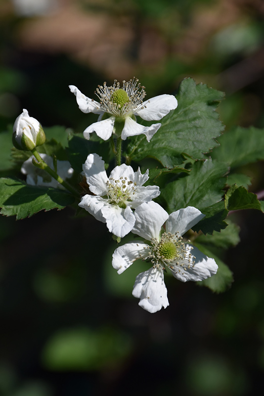 Natchez Thornless Blackberry features dainty clusters of white star-shaped flowers from mid to late spring. It has green deciduous foliage. The fuzzy oval compound leaves do not develop any appreciable fall color. It features an abundance of magnificent black berries in mid summer.