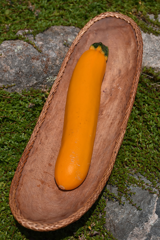 A beautiful heirloom, bush type variety; produces bright yellow, medium sized, long and slender fruit; creamy white flesh with a delicious flavor, perfect for cooking, roasting and grilling; harvest fruit young and often when still straight and no curving