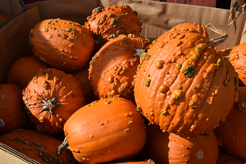 Lumpy and bumpy, this unique variety is perfect for fall décor and culinary use; large, rounded pumpkins with deep orange skin and green warts, grow upwards of 20lbs; this selection has a lovely sweet and nutty flavor, great for soups, pies and roasting