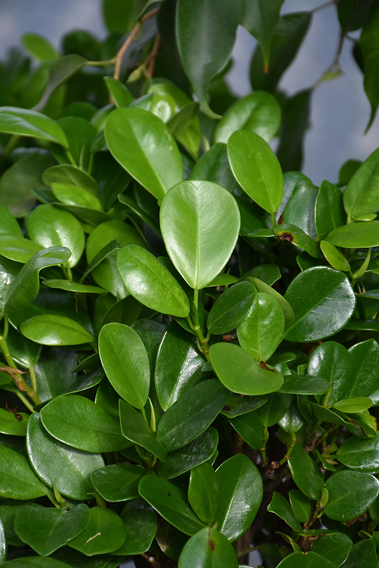 Moclame Ficus' attractive glossy oval leaves remain dark green in color throughout the year on a plant with a round habit of growth.