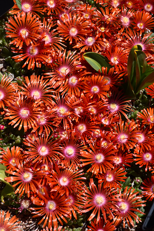 Red Mountain® Flame Ice Plant features showy red daisy flowers with orange overtones and white eyes rising above the foliage from early summer to mid fall. Its attractive small succulent narrow leaves are green in color. As an added bonus, the foliage turns a gorgeous burgundy in the fall.