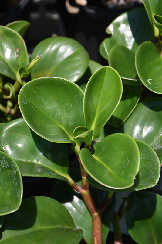 Baby Rubber Plant's attractive small glossy oval leaves remain dark green in color throughout the year on a plant with an upright spreading habit of growth. The brick red stems are very effective and add to the plant's interest.