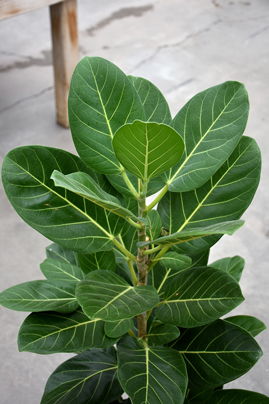 Fuzzy Wuzzy™ Audrey Banyan Fig's attractive large glossy oval leaves remain dark green in color with distinctive creamy white veins throughout the year on a plant with an upright spreading habit of growth.