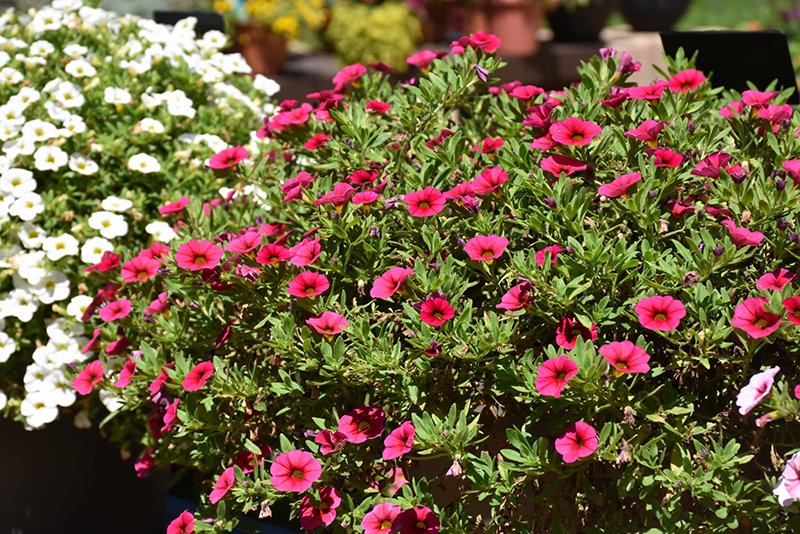 Cabaret® Hot Rose Calibrachoa is a fine choice for the garden, but it is also a good selection for planting in outdoor containers and hanging baskets. Because of its trailing habit of growth, it is ideally suited for use as a 'spiller' in the 'spiller-thriller-filler' container combination; plant it near the edges where it can spill gracefully over the pot. Note that when growing plants in outdoor containers and baskets, they may require more frequent waterings than they would in the yard or garden.
