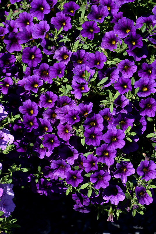 MiniFamous® Neo Dark Blue Calibrachoa is smothered in stunning royal blue trumpet-shaped flowers with purple overtones and yellow throats at the ends of the stems from late spring to early fall. Its small pointy leaves remain green in color throughout the season.