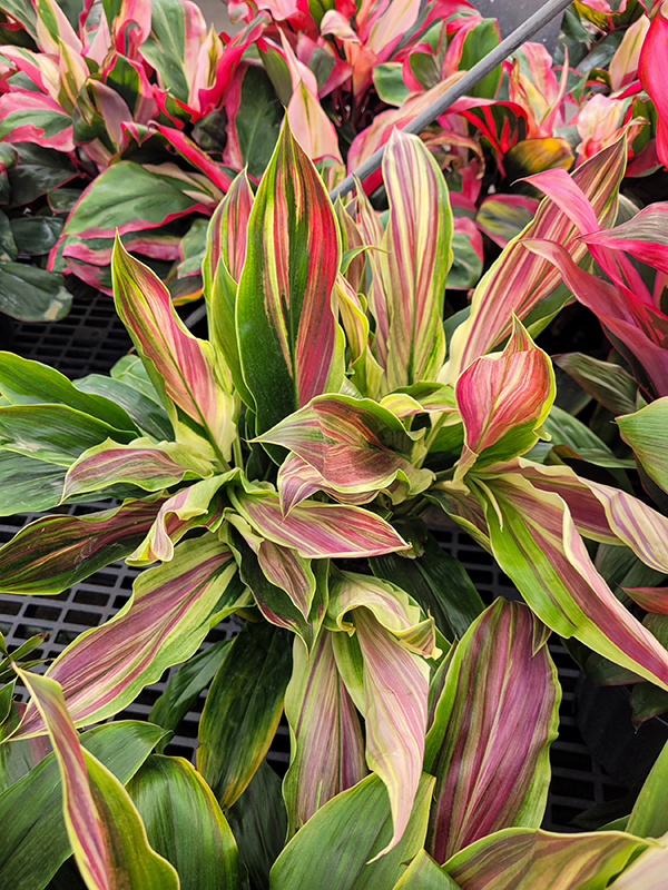 Sherbert Hawaiian Ti Plant is primarily valued in the home for its ornamental upright and spreading habit of growth. Its attractive glossy sword-like leaves emerge rose, turning dark green in color with prominent creamy white stripes and tinges of buttery yellow throughout the year.