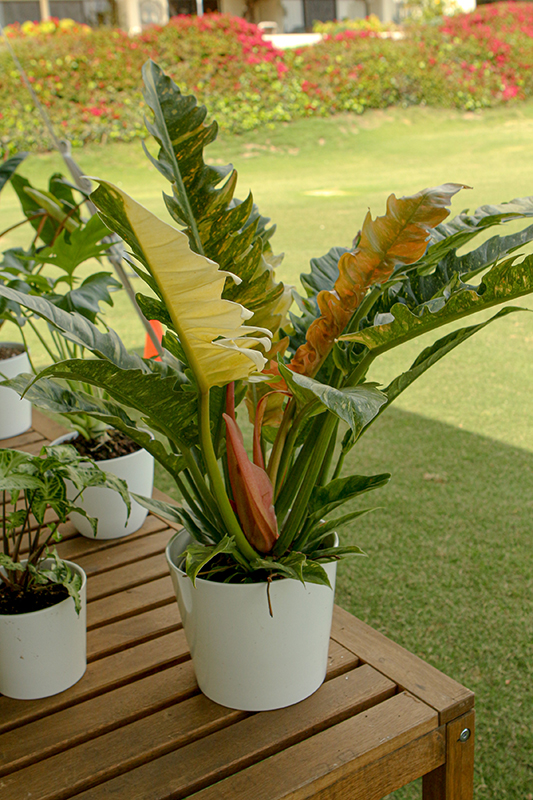 A interesting variety that presents eye-catching, deeply serrated foliage in hues of red, cream, orange and green ; perfect for indoor growing in a bright area; create a big and bold statement in houseplant collections; low maintenance and slow growing