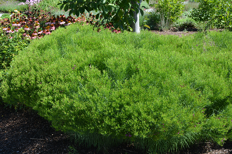 This dense, compact, well branched variety has lovely fine textured foliage; long blooming masses of purple flowers in summer; great for borders or massed as an accent; very undemanding and drought tolerant