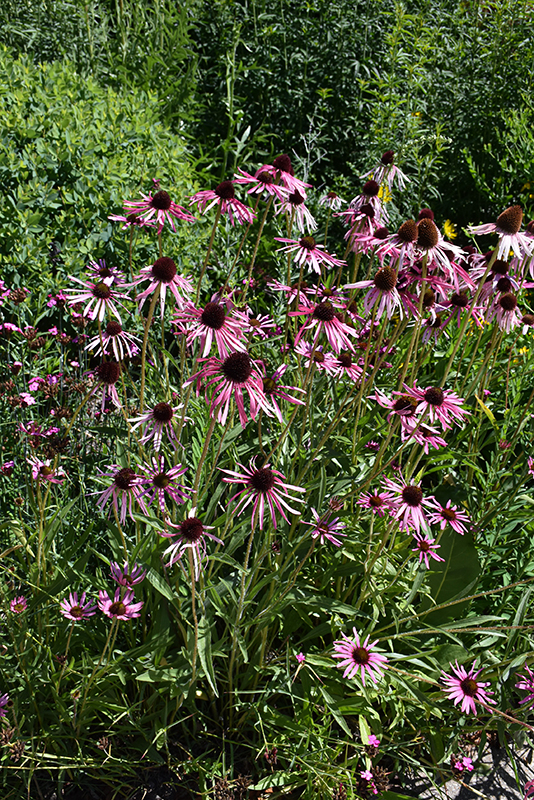 A compact variety bearing a profusion of pale pink to purple daisy flowers with orange cones, rising above narrow, oblong, gray-green leaves; easy to grow, and very drought tolerant; perfect for borders, containers or wildflower or cutting gardens