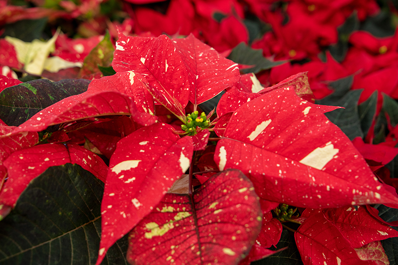 A truly elegant variation of the Holiday classic, featuring rich red bracts lightly peppered with white stars at the terminal ends, above an upright mound of deep green foliage; keep away from cold drafts and keep soil evenly moist