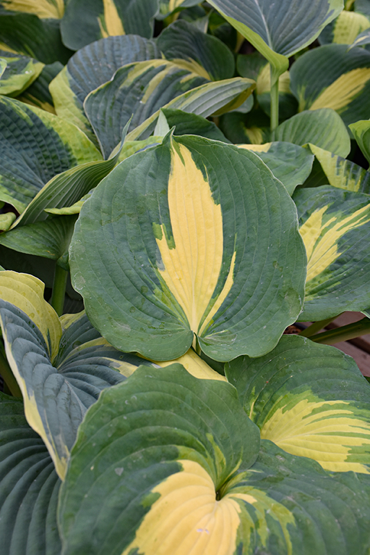Creamy white to pale yellow center variegated with wide blue-green margin; slightly cupped foliage; dainty white flowers; provides beautiful texture and contrast to other plants.