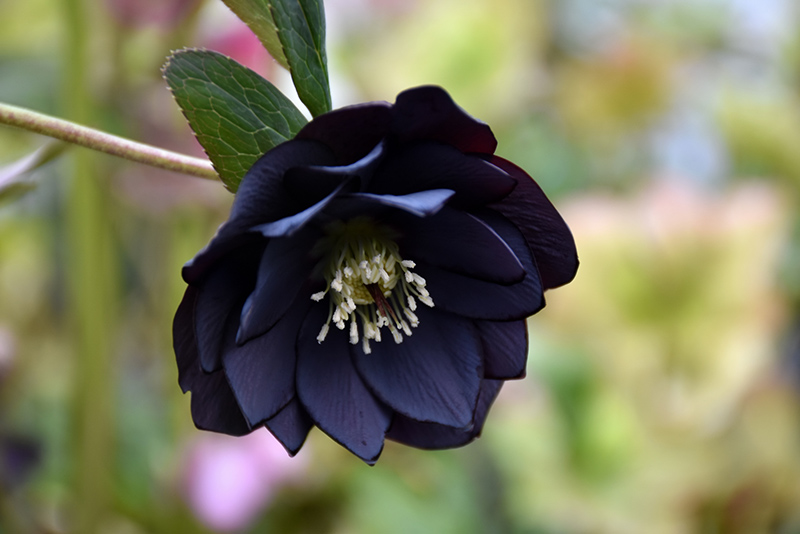 Incredible dangling buttercup-type double blooms are almost black with chartreuse centers; one of the first flowers to come up in cool weather and what a beautiful harbinger they are; great in woodland gardens and on shaded slopes