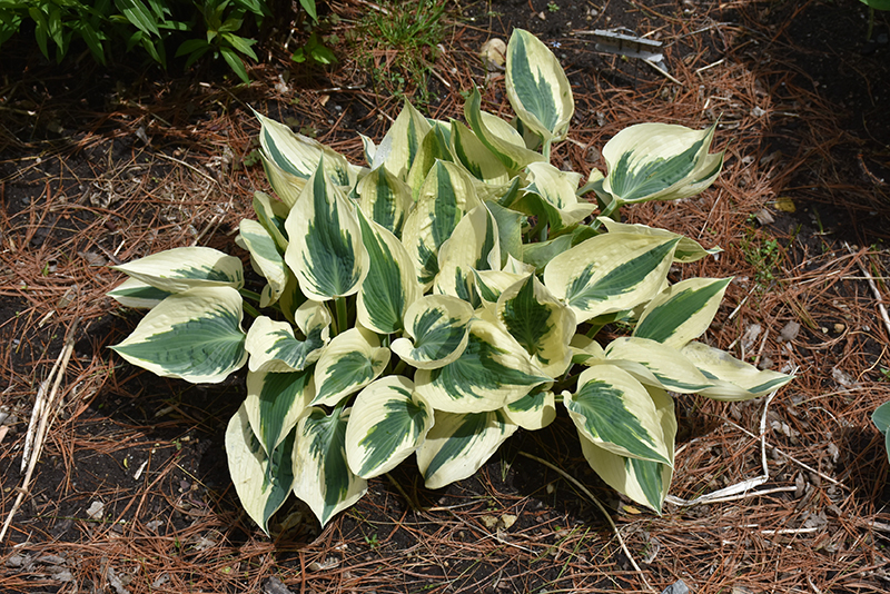 Hardy, durable clump-forming perennial. Leaves display a wide, creamy white margin and blue center. Lavender flowers are produced above the foliage. Attracts hummingbirds. Slug resistant.