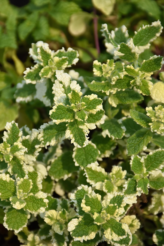 Variegated Pineapple Mint is a good choice for the edible garden, but it is also well-suited for use in outdoor pots and containers. Because of its spreading habit of growth, it is ideally suited for use as a 'spiller' in the 'spiller-thriller-filler' container combination; plant it near the edges where it can spill gracefully over the pot. Note that when growing plants in outdoor containers and baskets, they may require more frequent waterings than they would in the yard or garden.
