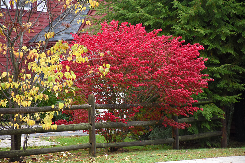 A spectacular and compact garden shrub which turns a luminous red color in fall, very showy; a shapely mounded growth habit and interesting corky wings on the branches; a very popular and adaptable landscape plant